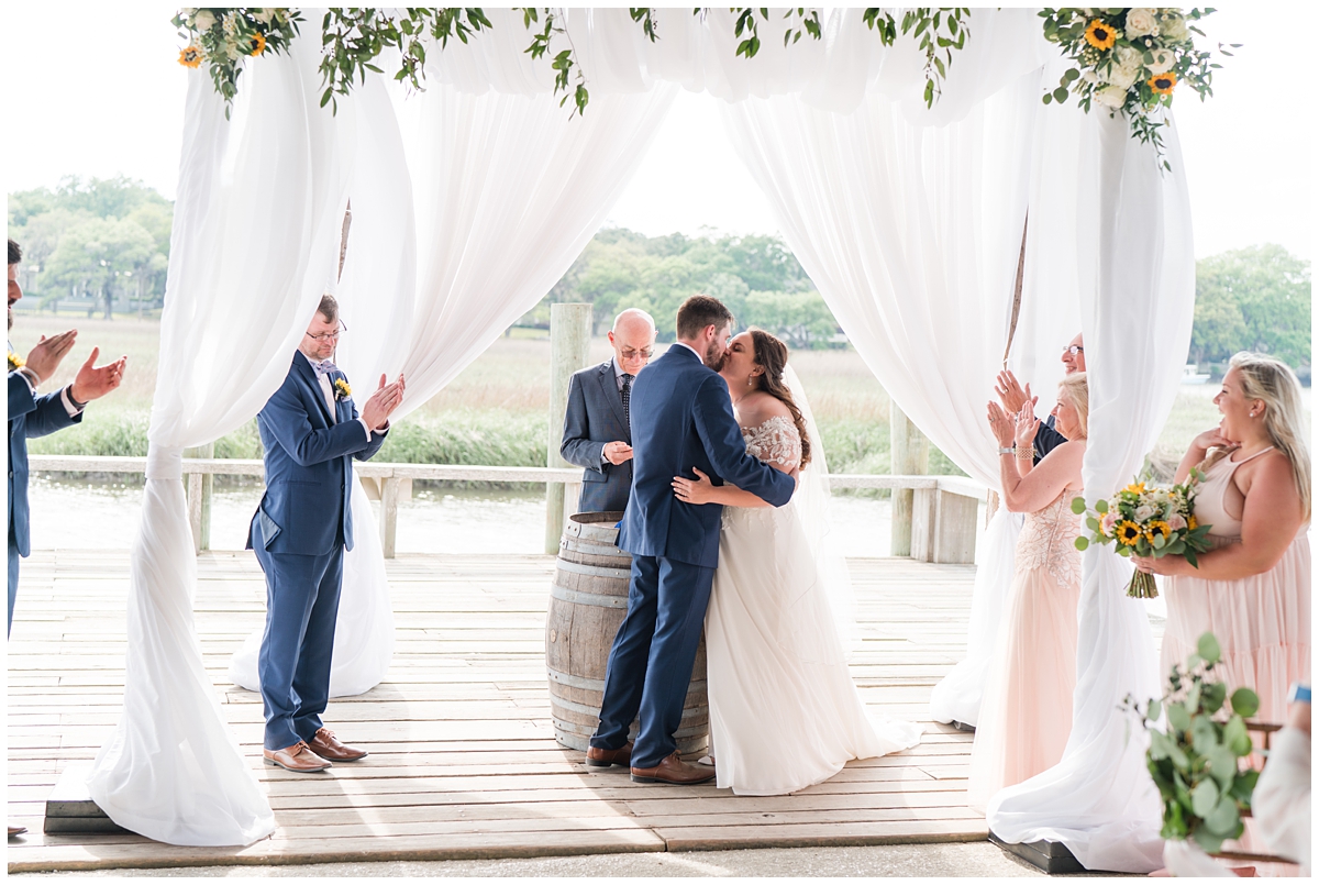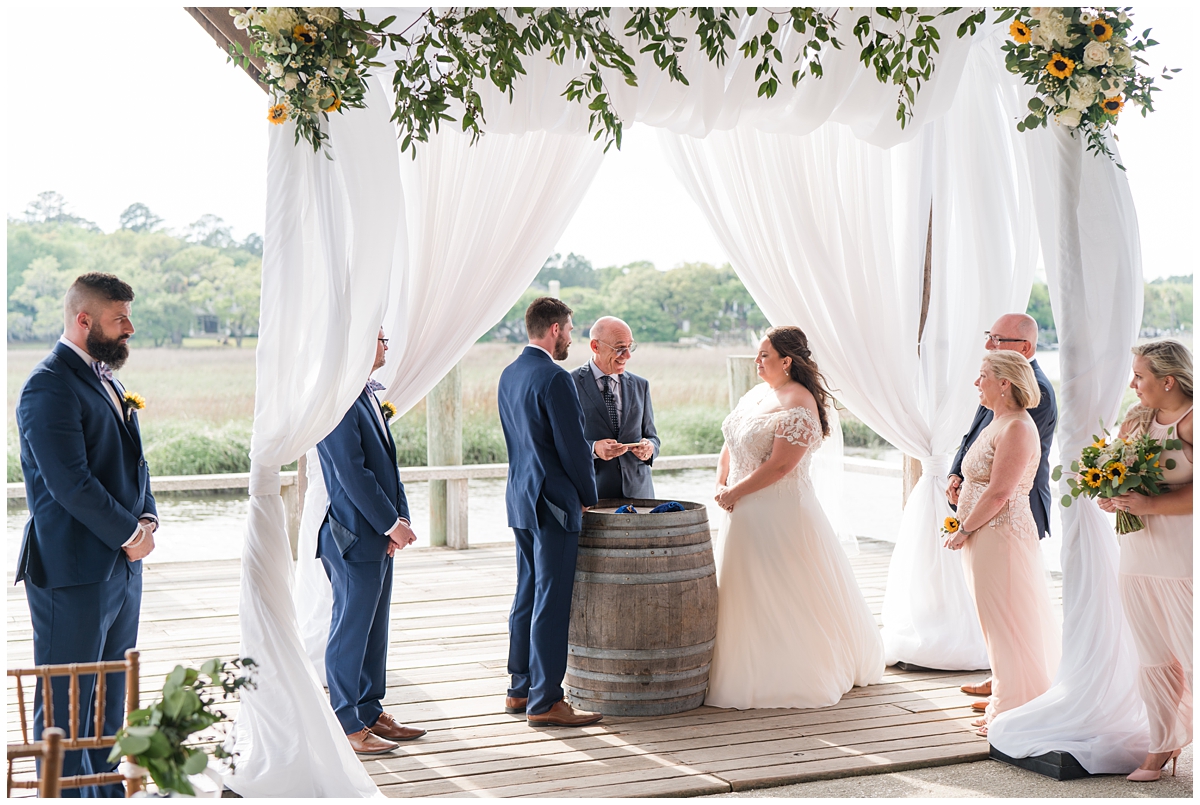 We all traveled to Boone Hall, where we took portraits underneath the stunning live Oak trees and Amanda and Jonathan relaxed with family and their wedding party in the Cotton dock as guests began to arrive for the ceremony. When it was time to say, “I do,” I watched as Jonathan watched Amanda be walked down the aisle by her mom and dad. And that was the second time that day that I knew they were meant to be together.