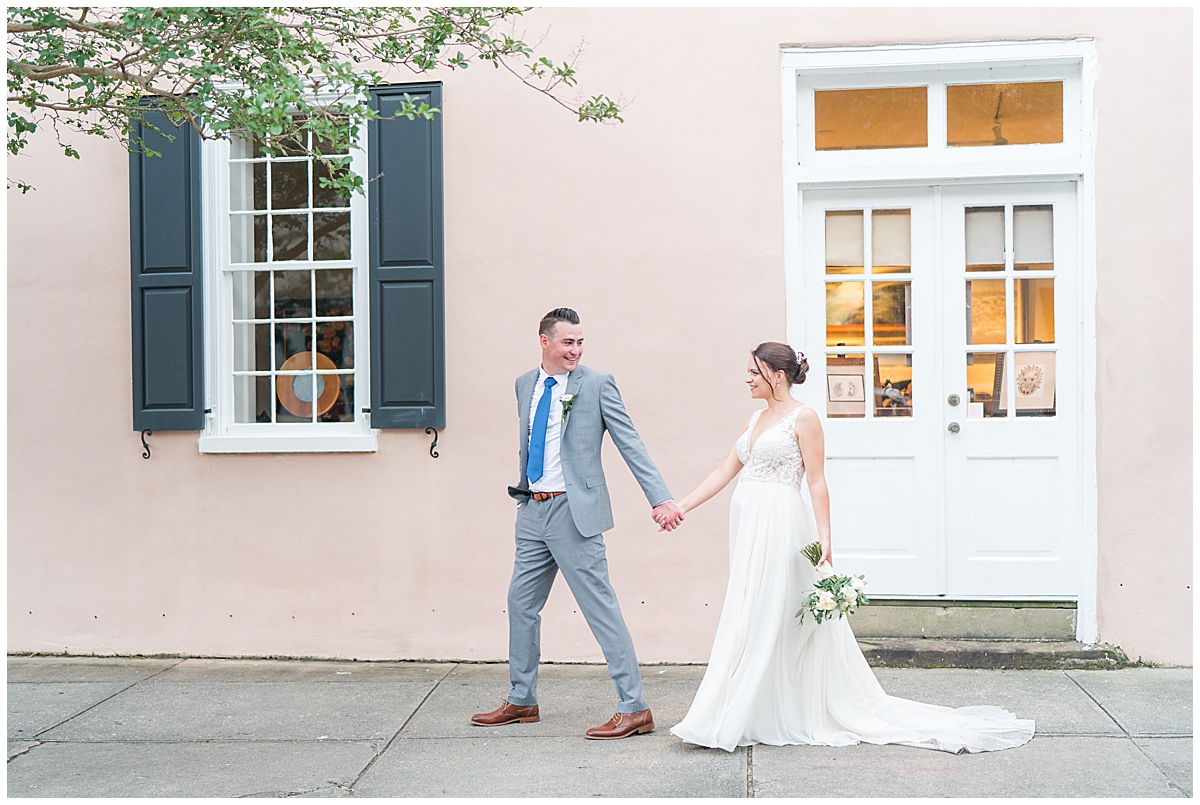 The stretch of beach we gathered on to get Hannah and Matthew married on couldn’t have been more beautiful, but the highlight most definitely was listening to these two say their vows to each other. I seriously can’t help but tear up during ceremonies, and Hannah and Matthew’s was no exception. We then made our way to downtown Charleston to take some more photos of the newlyweds and even though we were fighting impending rain the entire time, it didn’t seem to bother the these two one bit.