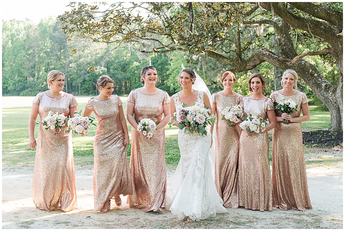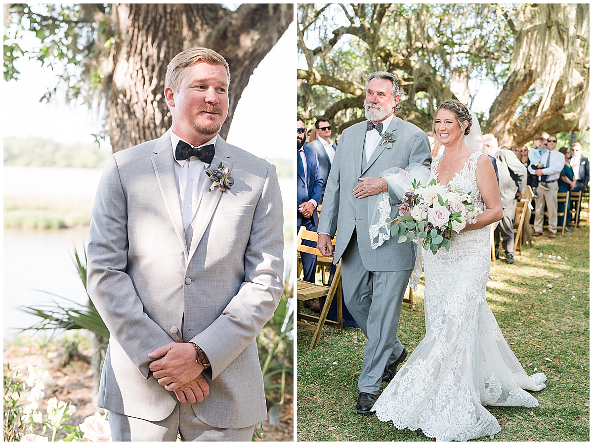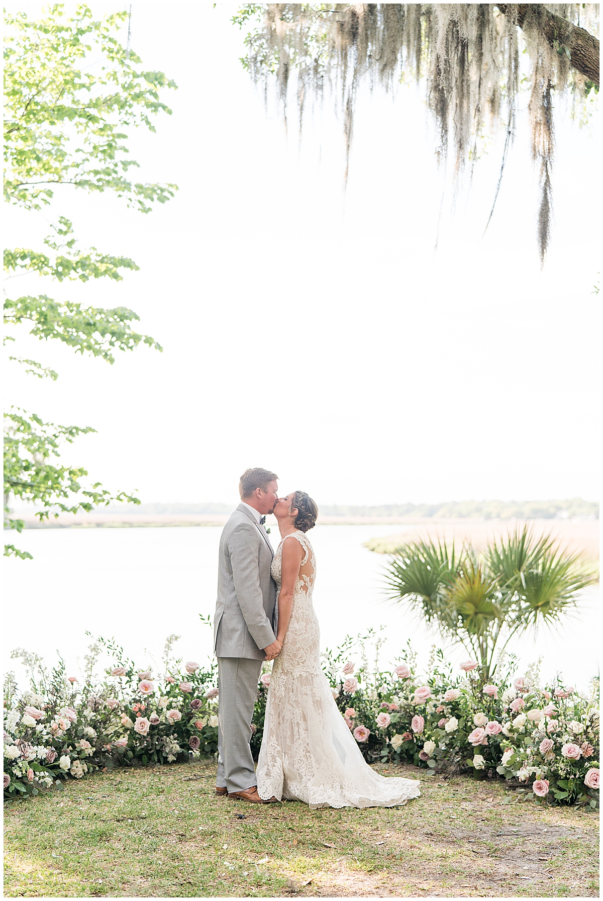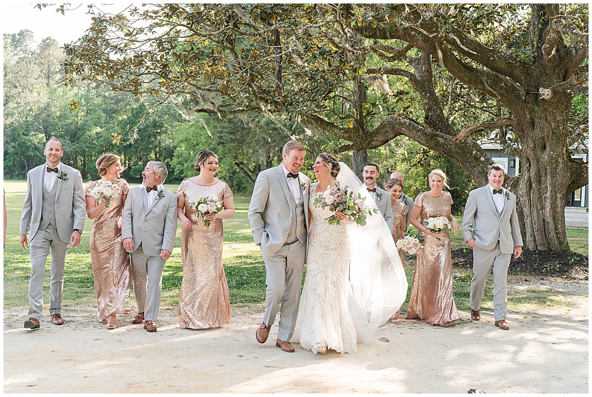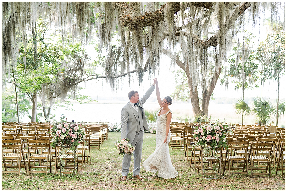 Not only was the day a blast, but it was also stunningly gorgeous! Danielle chose a beautiful color palette of rose gold, light pinks, mauve, and white that was just so so gorgeous. Take one look at the florals and you’ll be able to see for yourself. Combined with the decor was the sweeping views of the Ashley River at the grounds of Runnymeade. It couldn’t have been a more gorgeous spring day to get these two married, and after Covid pushed back their engagement session a bit, I’m SO happy it didn’t do the same for their wedding day.