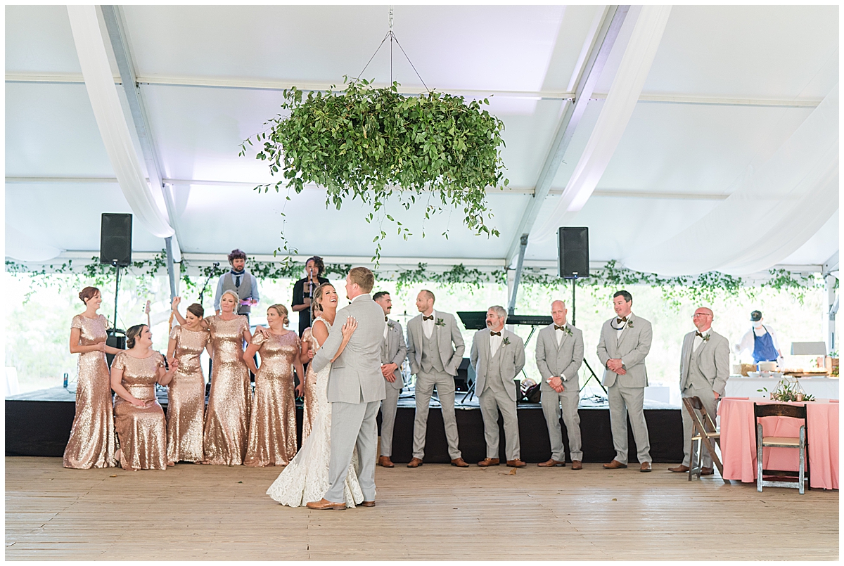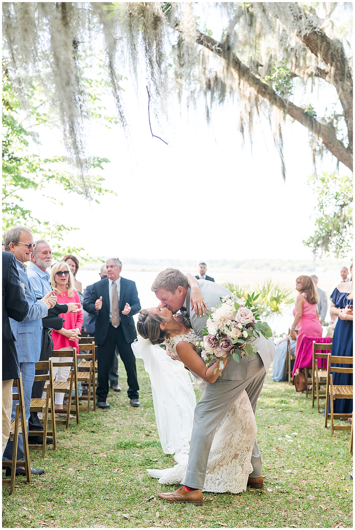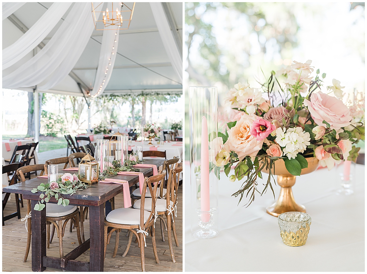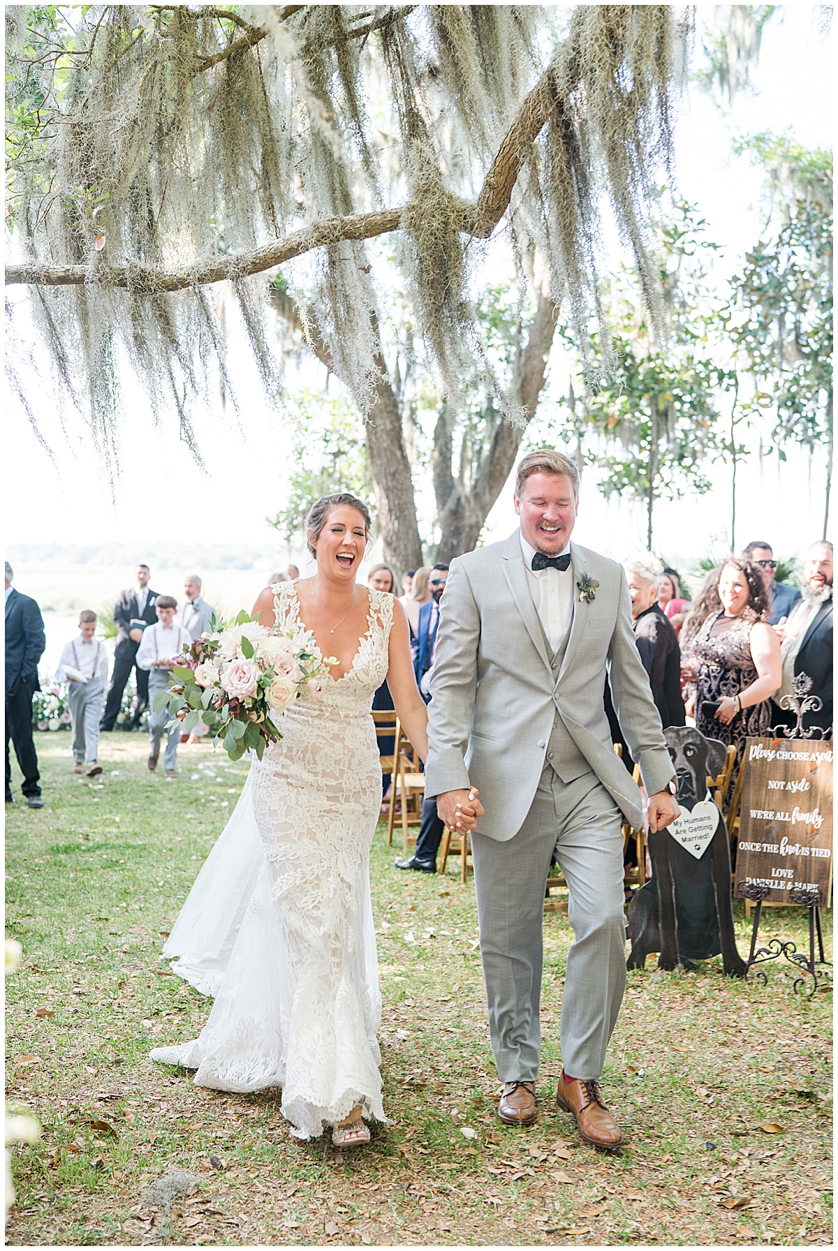Not only was the day a blast, but it was also stunningly gorgeous! Danielle chose a beautiful color palette of rose gold, light pinks, mauve, and white that was just so so gorgeous. Take one look at the florals and you’ll be able to see for yourself. Combined with the decor was the sweeping views of the Ashley River at the grounds of Runnymeade. It couldn’t have been a more gorgeous spring day to get these two married, and after Covid pushed back their engagement session a bit, I’m SO happy it didn’t do the same for their wedding day.